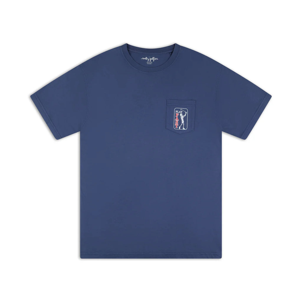 Introducing our Play Fast Pocket T-Shirt, designed for those who value a great time on the course without the drag of slow play. Keep your group moving swiftly and your drinks cold with this stylish reminder to keep the pace. Made with premium materials, this tee is both comfortable and functional. The playful message on the shirt is sure to encourage everyone to pick up the pace, because after all, the faster you play, the colder your drinks stay. Don't let the ice melt—grab your Play Fast Pocket T-Shirt today!